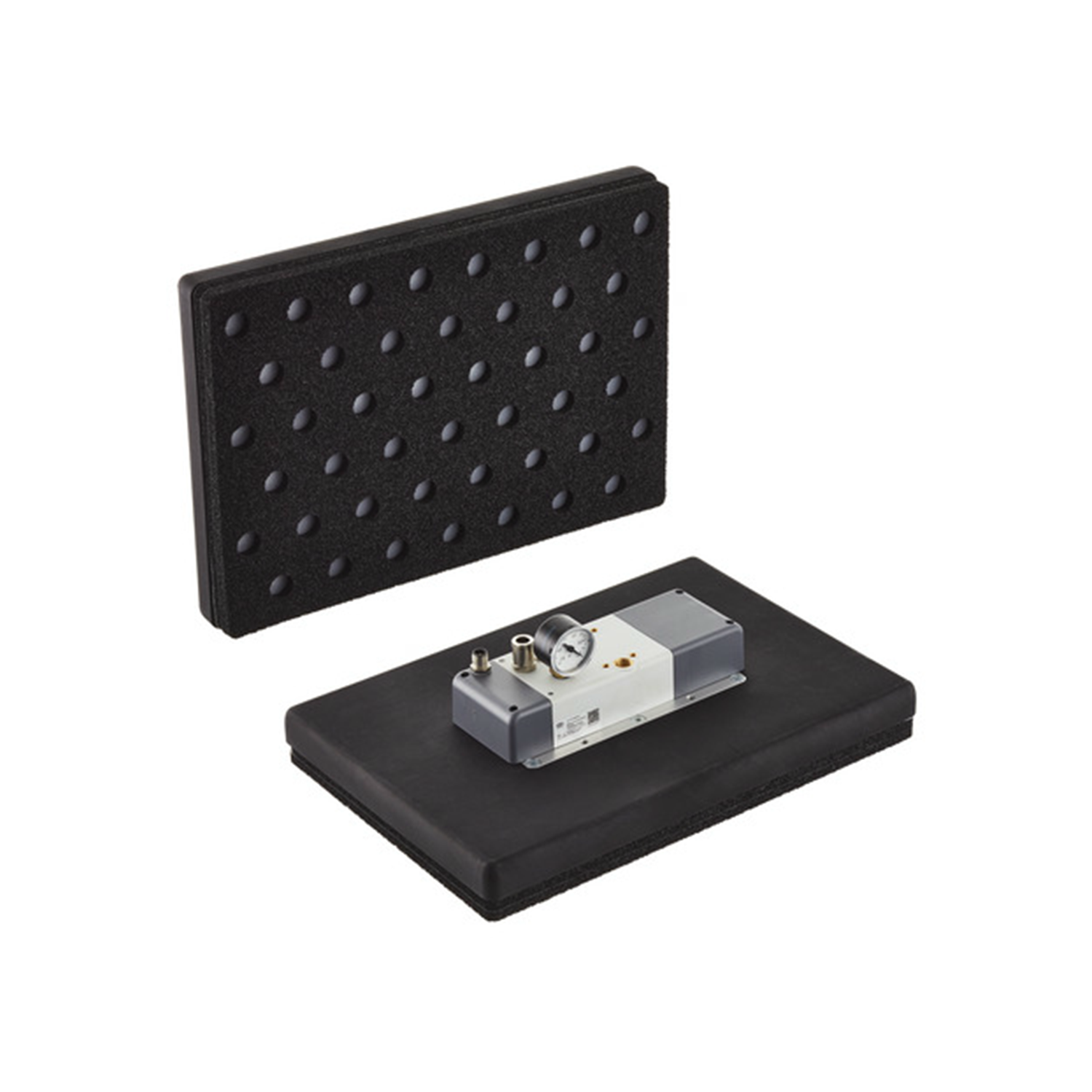 The vacuum is generated directly in the gripper using compressed air, making external vacuum pumps redundant. The on/off functionality is also integrated into the gripper, making for a compact and fully integrated system.